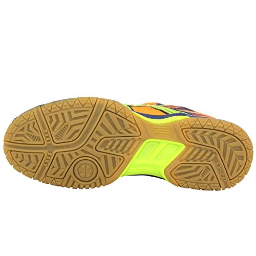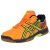 Der Gel-Squad von Asics in der Farbkombination Orange, Gelb und Blau ist ein vielseitiger Schuh für Handball genauso wie für andere Indoor-Sportarten.